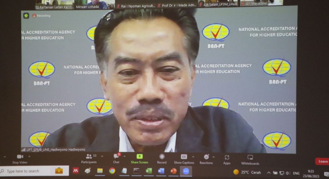 LITERASIPOST.COM, DENPASAR | Tim Asesor Badan Akreditasi Nasional Perguruan Tinggi (BAN-PT) melakukan asesmen lapangan yang berlangsung secara daring, Jumat (23/6/2023). Asesmen ini dalam rangka pemantauan tahap-3 Program Studi Magister Pertanian Lahan Kering Fakultas Pertanian Universitas Udayana (Unud), Adapun Tim Asesor yang hadir yakni Prof. Dr. Mirwan Ushada, STP., M.App.Life.Sc (UGM) dan Prof. Dr. Ir. Hadiwiyono, M.Si (UNS Surakarta).