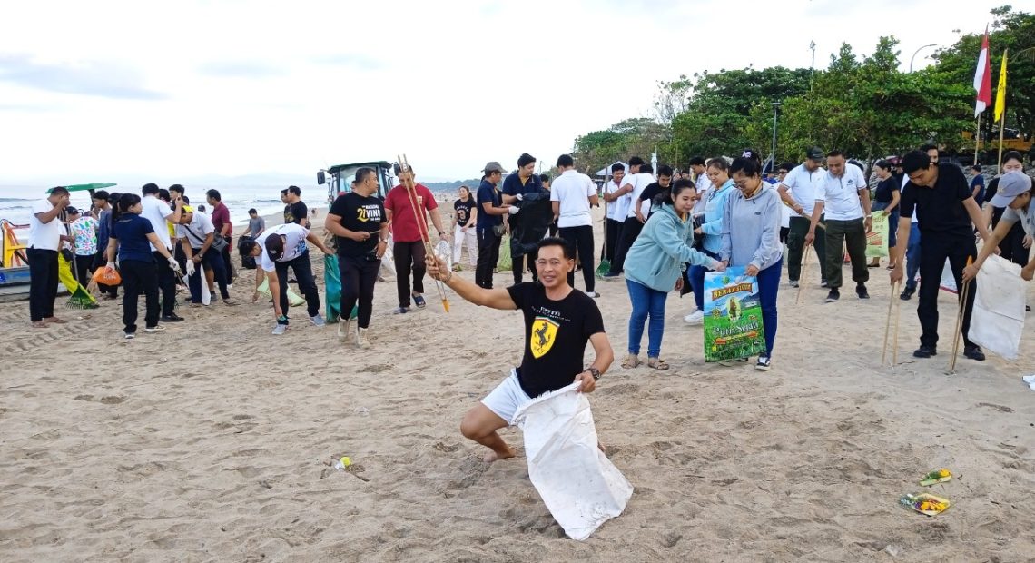 Para pelaku usaha dan stakeholders pariwisata sangat antusias berpartisipasi pada kegiatan Beach Clean Up di Pantai Legian. (Foto: Literasipost)