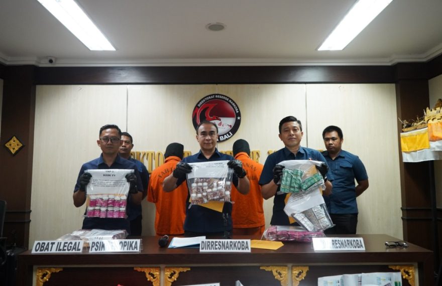 LITERASIPOST.COM – DENPASAR | Diresnarkoba Kombes Pol Radiant S.I.K., M.Hum., didampingi para Kasubdit menyampaikan Polda Bali berhasil mengungkap peredaran obat-obatan tidak berizin dengan nilai fantastis hampir Rp2 miliar. Pengungkapan tersebut pada 14 September 2025 di 3 TKP, yakni TKP 1 Jl. Nakula Legian Kaja Kuta Badung; TKP 2 Jl. Lebak Bene Legian Kelod Kuta