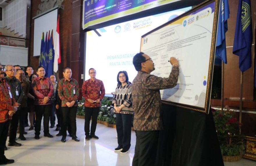 LITERASIPOST.COM, JIMBARAN | Universitas Udayana (Unud) menggelar acara Pencanangan Pembangunan Zona Integritas Menuju Wilayah Bebas dari Korupsi (ZI-WBK) di Fakultas dan Pascasarjana dilingkungan Universitas Udayana yang dirangkaikan dengan kegiatan Refleksi Akhir Tahun 2023, Jumat (29/12/2023). Acara yang digelar di Auditorium Widya Sabha Kampus Jimbaran ini dihadiri