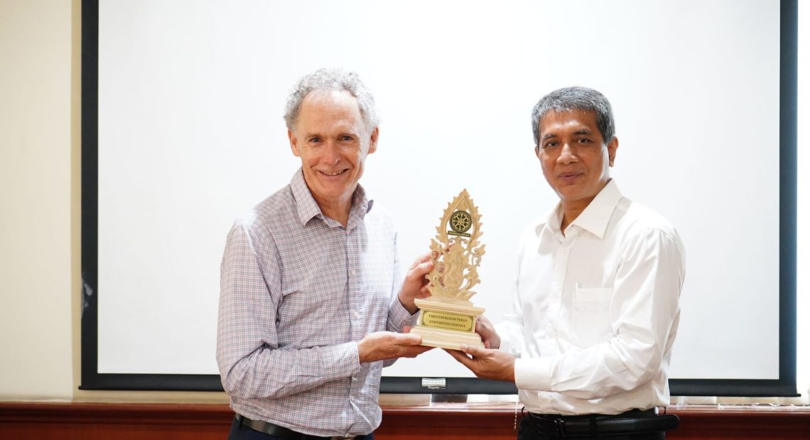 Acara dilanjutkan dengan presentasi oleh Prof. Januraga mengenai kegiatan kerja sama yang sebelumnya sudah berjalan antara FK Unud dan UNSW serta kemungkinan kelanjutan kolaborasi kedepannya terutama dengan Program Studi Doktor di FK Unud.