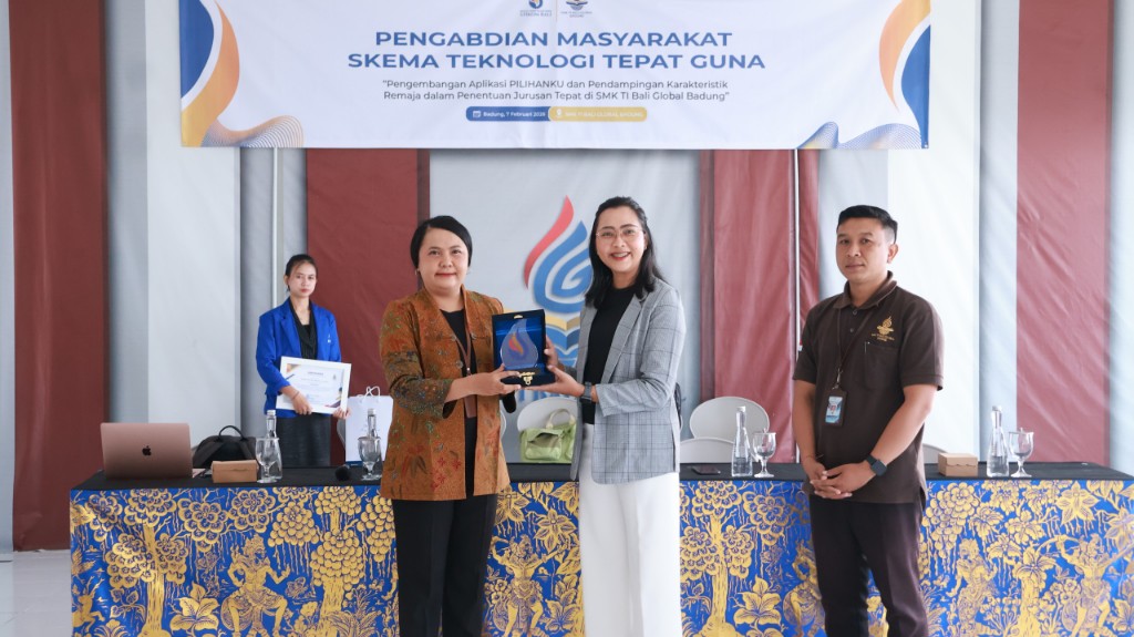 LITERASIPOST.COM – Badung | Sebagai bagian dari komitmen Tri Dharma Perguruan Tinggi, ITB STIKOM Bali kembali melaksanakan kegiatan pengabdian kepada masyarakat yang berfokus pada pemanfaatan teknologi untuk mendukung dunia pendidikan pada tanggal 7 Februari 2026. Program ini dilaksanakan di SMK TI Bali Global Badung melalui Skema Teknologi Tepat Guna(PKM TTG) dengan tema “Pengembangan Aplikasi Pilihanku dan Pendampingan Karakteristik Remaja dalam Penentuan Jurusan Tepat di SMK TI Bali Global Badung”