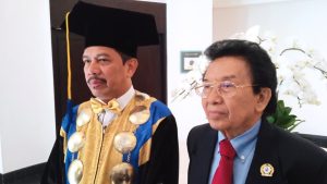 Rektor ITB STIKOM Bali Dr Dadang Hermawan (kiri) dan Pembina Yayasan Widya Dharma Shanti Prof Made Bandem saat memberikan keterangan pers. (Foto: igp/Literasipost)