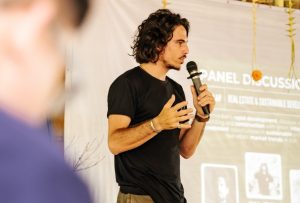 Panel kedua, Properti & Pembangunan Berkelanjutan, menghadirkan Heruanda Barabah (Eco Mantra), Tobi Klanner (Altarize), Djuca Terenzi (Jiwa Garden), dan insinyur berkelanjutan Rob Dubois. Diskusi menekankan bagaimana pesatnya pembangunan properti di Bali dapat selaras dengan pelestarian ekologi melalui desain yang berkelanjutan dan investasi yang bertanggung jawab.