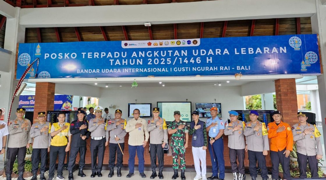 LITERASIPOST.COM – BADUNG | Kapolda Bali Irjen Pol Daniel Adityajaya S.H., S.I.K., M.Si., bersama Kasdam IX/Udayana Brigjen TNI Taufiq Hanafi didampingi para pejabat utama Polda Bali dan Kapolres Bandara, serta Dansathanlan TNI AU dan GM Angkasa Pura, mengecek Posko Terpadu Angkutan Udara Lebaran Tahun 2025 / 1446 H, pada Selasa (25/3/2025).