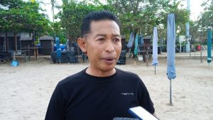 Ketua IMI Bali, Ajik Krisna usai membagikan paket sembako kepada tim kebersihan Pantai Legian. (Foto: igp/Literasipost)
