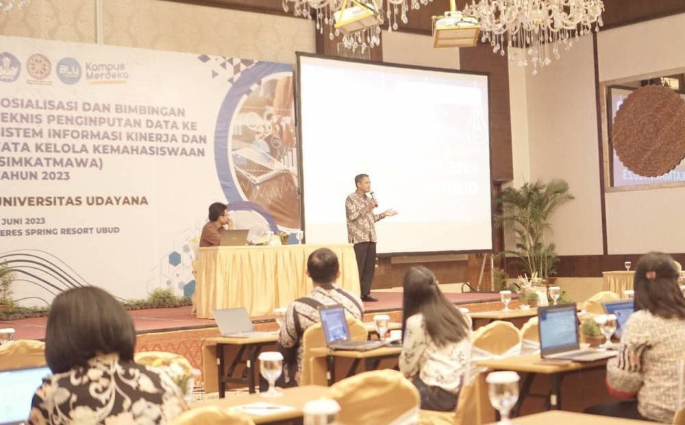 LITERASIPOST.COM, GIANYAR | Biro Kemahasiswaan Universitas Udayana (Unud) menyelenggarakan Sosialisasi dan Bimbingan Teknis Penginputan Data ke Sistem Informasi Kinerja dan Tata Kelola Kemahasiswaan (SIMKATMAWA) bertempat di SereS Spring Resort Ubud, Jumat (02/06/2023). Sosialisasi ini menghadirkan narasumber dari Universitas Negeri Semarang yakni Prof. Dr. Parmin, S.Pd., M.Pd. yang menyampaikan materi tentang pengisian data SIMKATMAWA.