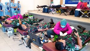 Sejumlah personel TNI AU mengikuti donor darah. (Foto: Literasipost)