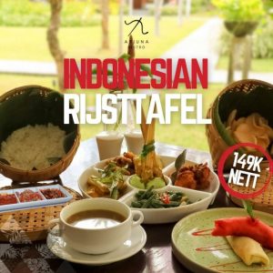 Adapun menu lain yang di kreasikan oleh Chef The Cakra Hotel Bali yaitu “Indonesian Rijsttafel” dengan hanya IDR 149.000 nett untuk berdua. Menu ini terdiri dari hidangan nasi yang disajikan di dalam bakul beserta berbagai pilihan lauk pauk dan sayur juga dengan pilihan beberapa sambal sebagai pelengkap untuk menambah cita rasa Indonesia yang khas.