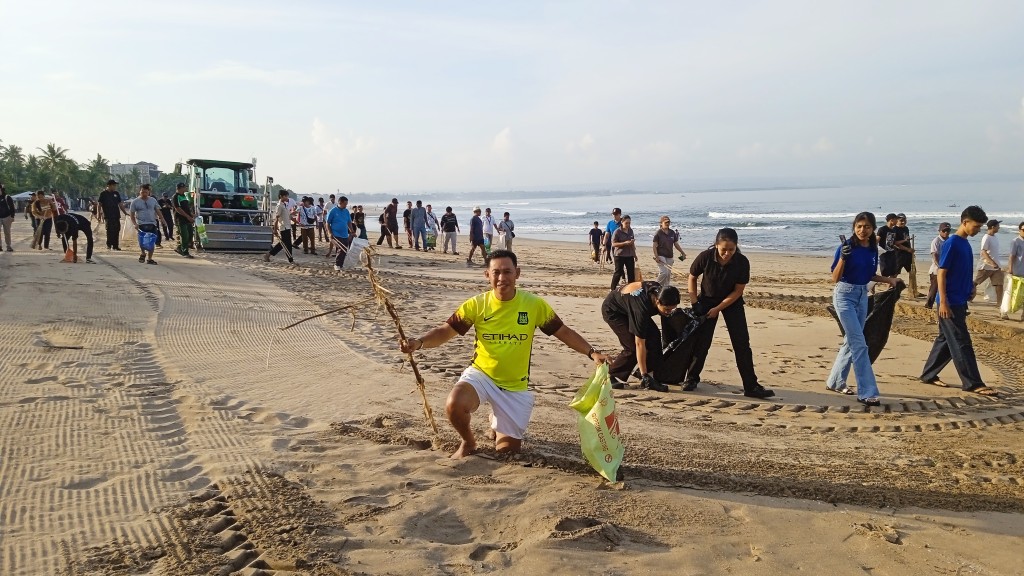 LITERASIPOST.COM – Legian | Ratusan pelaku usaha dan stakeholders pariwisata di wilayah Kelurahan Legian, Kabupaten Badung, serta didukung komunitas Bumi Kita, penuh semangat melakukan aksi bersih-bersih pantai (Beach Clean Up) di Pantai Legian, Jumat (24/10). Mereka dengan sadar senantiasa ikut menjaga kebersihan dan keasrian destinasi internasional ini.