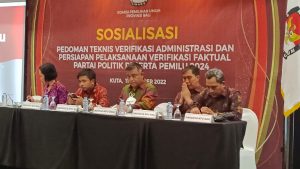 LITERASIPOST.COM, KUTA | KPU Provinsi Bali menyelenggarakan Sosialisasi Pedoman Teknis Verifikasi Administrasi dan Persiapan Pelaksanaan Verifikasi Faktual Partai Politik Peserta Pemilu 2024 bertempat di Bali Dynasti Hotel, Selasa (11/10/2022) dengan menghadirkan narasumber Anggota KPU RI, Idham Holik.