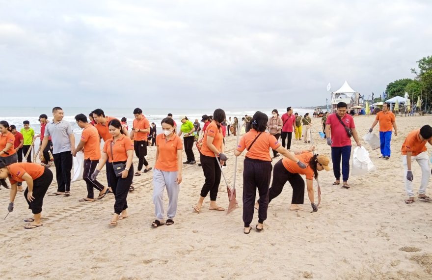 LITERASIPOST.COM – LEGIAN | Ratusan pelaku usaha dan stakeholders pariwisata di wilayah Kelurahan Legian, Kabupaten Badung, penuh semangat menunjukkan partisipasi aktif dalam gerakan Beach Clean Up (bersih-bersih pantai) di Pantai Legian, Jumat (26/9). Hal tersebut menunjukkan kesadaran kolektif untuk menciptakan destinasi yang bersih, asri, nyaman dan mempesona.