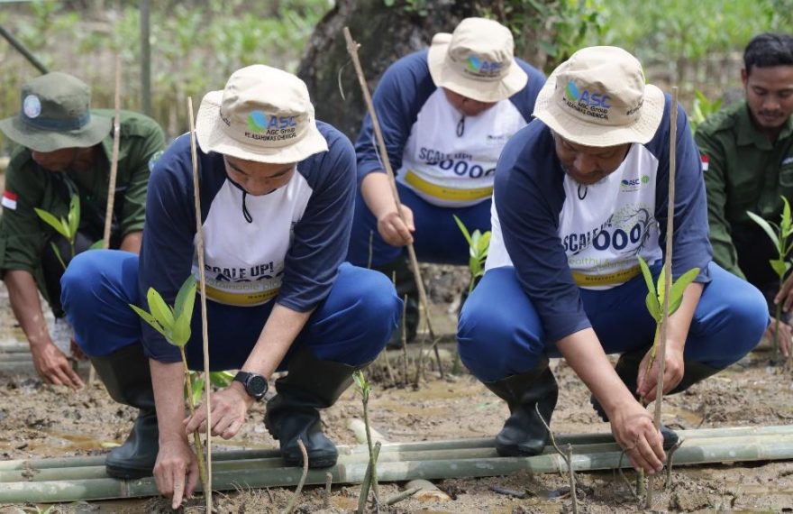 LITERASIPOST.COM, PANDEGLANG | PT Asahimas Chemical (ASC) melalui program peduli lingkungan bekerjasama dengan Yayasan Kehati kembali melakukan penanaman bibit mangrove baru di area kawasan Pantai Desa Ujung Jaya, Sumur, Kabupaten Pandeglang, Selasa (7/2/2023). Hadir dalam kegiatan tersebut Wakil Presiden Direktur & jajaran Manajemen PT Asahimas Chemical, Camat