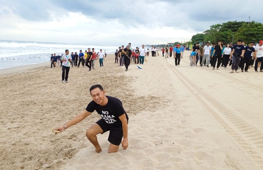 “Kegiatan Beach Clean Up rutin yang kita lakukan ini adalah sebagai bagian dari upaya untuk menjaga destinasi ini tetap bersih, sehat dan mempesona” LITERASIPOST.COM – LEGIAN | Tim WPN (Wayan Puspa Negara) bersama komunitas BumiKita melaksanakan kegiatan Beach Clean Up di Pantai Legian, Kabupaten Badung, secara rutin setiap hari Jumat dan tidak pernah