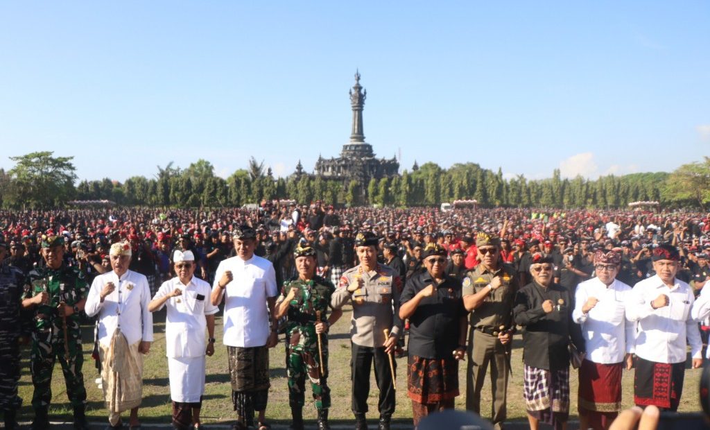 LITERASIPOST.COM – DENPASAR | Kapolda Bali, Irjen Pol. Daniel Adityajaya, S.I.K., M.Si., menghadiri apel Gelar Agung Pecalang Bali yang berlangsung dengan khidmat dan penuh semangat di Lapangan Niti Mandala, Denpasar, Senin (1/9). Kegiatan ini turut dihadiri oleh Gubernur Bali Dr. Ir.