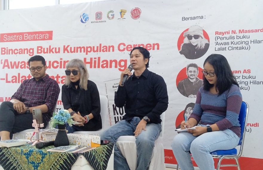 LITERASIPOST.COM – Denpasar | Sastra Bentara hadir di Toko Buku Gramedia Teuku Umar, Denpasar, Minggu (16/11). Kegiatan yang diisi Bincang Buku Kumpulan Cerpen berjudul “Awas Kucing Hilang (Lalat Cintaku)” karya Rayni N. Massardi dihadiri oleh para sastrawan, mahasiswa dan media. Dalam Bincang Buku ini juga hadir Christyan AS (ilustrator) dan Made Edy