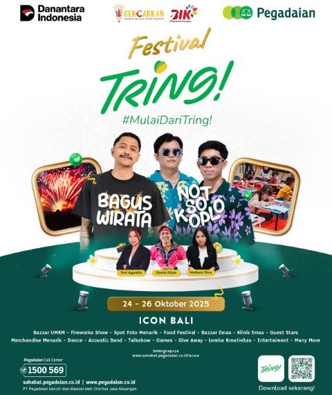 LITERASIPOST.COM – Denpasar | PT Pegadaian Kanwil VII Denpasar resmi membuka Festival Tring! di Icon Mall Bali. Acara ini menjadi momentum literasi keuangan sekaligus aktivasi layanan digital melalui Aplikasi Tring!, yang memudahkan masyarakat untuk menabung, mencicil, hingga berinvestasi emas lewat fitur Tabungan Emas, Cicil Emas, dan Deposito Emas. RCEO Kanwil