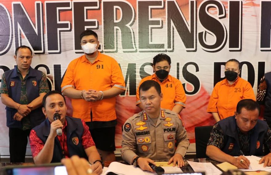 LITERASIPOST.COM, DENPASAR | Ditreskrimsus Polda Bali merilis tiga pelaku Tindak Pidana Perdagangan Orang (TPPO). Hal itu terungkap dalam konferensi pers di Gedung Ditreskrimsus Polda Bali, Denpasar yang dihadiri Kabid Humas Polda Bali Kombes Pol. Satake Bayu bersama Wadir Reskrimsus Polda Bali AKBP Ranefli Dian Candra dan Kasubid Penmas Bidhumas AKBP Ketut Eka Jaya,