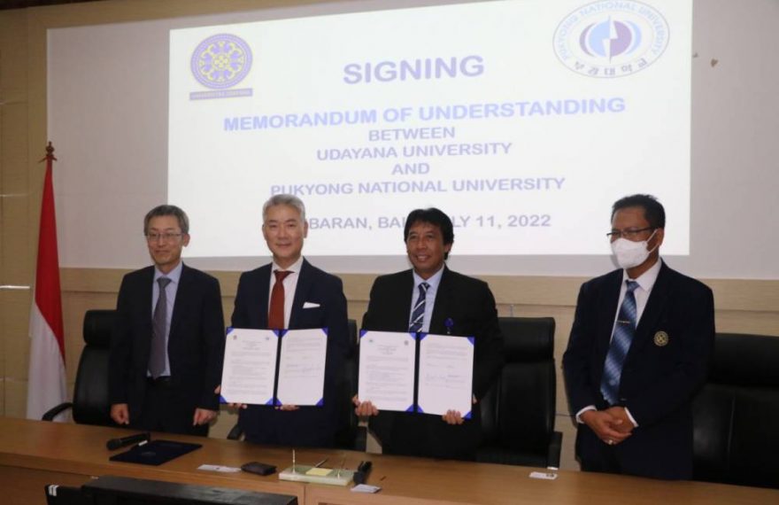 LITERASIPOST.COM, JIMBARAN | Universitas Udayana dan Pukyong National University Korea memperpanjang kerjasama kedua belah pihak yang ditandai penandatanganan Nota Kesepahaman (MoU) oleh Rektor Unud dan President Pukyong National University bertempat di Ruang Nusa Gedung Rektorat Kampus Jimbaran, Senin (11/07/2022). Kegiatan ini juga dihadiri oleh Wakil Rektor Bidang