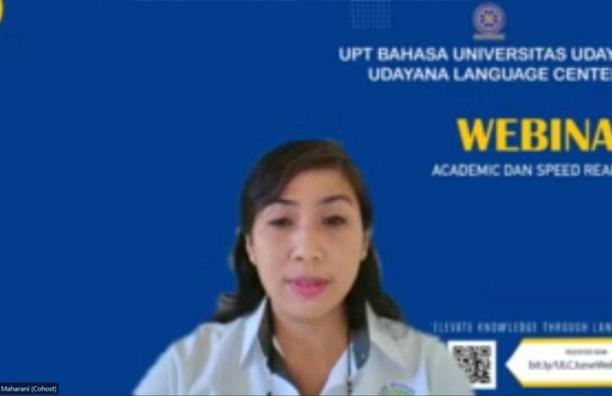 LITERASIPOST.COM, DENPASAR | Dalam rangka meningkatkan kompetensi civitas akademika dalam kemampuan skill kebahasaan, UPT Bahasa sesuai dengan tupoksinya yaitu meningkatkan kompetensi civitas akademika dalam kemampuan skill kebahasaan menyelenggarakan Webinar Academic and Speed Reading melalui Webex Meeting. Senin, (27/06/2022). Kegiatan ini juga dapat disaksikan melalui