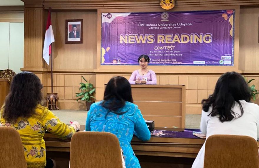 LITERASIPOST.COM, DENPASAR | Dalam rangka Dies Natalis ke-60 Universitas Udayana, UPT Bahasa menyelenggarakan News Reading Contest yang diikuti oleh mahasiswa dari PTN/PTS se-Bali, Jumat (9/9/2022) di Aula Lt 3 Gedung Pasca Sarjana Kampus UNUD Sudirman, Denpasar. Kegiatan ini juga dapat disaksikan melalui kanal Youtube Udayana TV: https://youtu.be/j6p92MxYDq4 sehingga