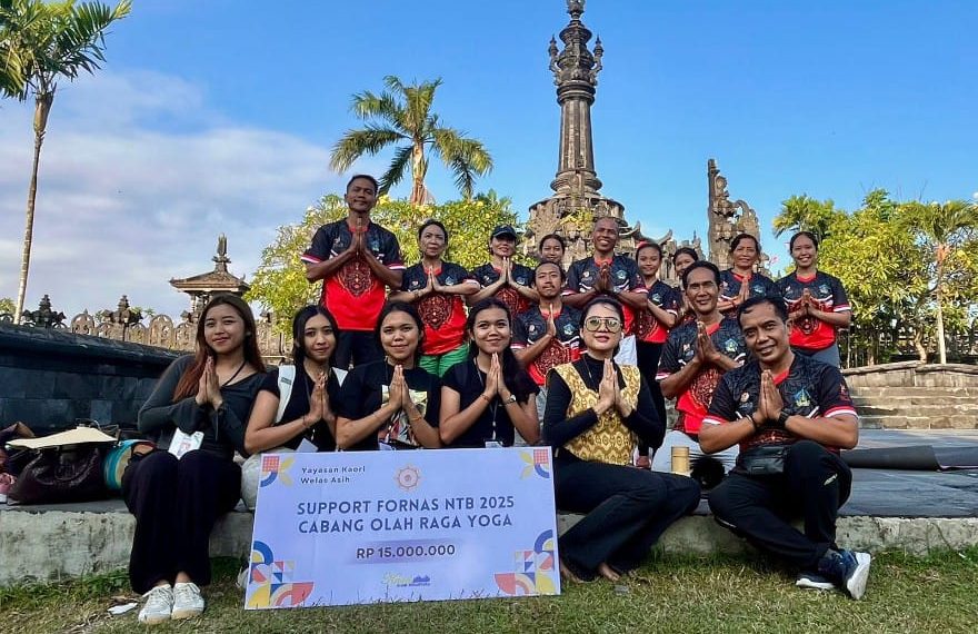 LITERASIPOST.COM – DENPASAR | Pendiri Yayasan Kaori Welas Asih (YKWA) Ni Kadek Winie Kaori Intan Mahkota memberikan dukungan kepada atlet cabang olahraga (Cabor) Yoga yang mewakili Bali di ajang Fornas NTB 2025. Winie Kaori memberikan support dana sebesar Rp15 juta dan langsung diterima oleh Wayan Sudiarta selaku Ketua Perkumpulan Praktisi Yoga Nasional Indonesia