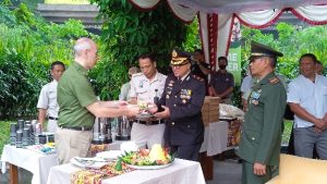 Pemotongan tumpeng oleh GM Bali Safari Park, Marcel Driessen yang diserahkan kepada undangan dari TNI-Polri. (Foto: Literasipost)