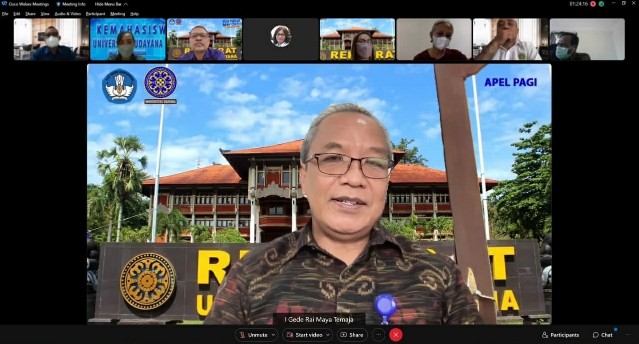 LITERASIPOST.COM, JIMBARAN | Universitas Udayana (UNUD) menggelar Sosialisasi Sistem Informasi Manajemen MBKM secara daring bagi mahasiswa melalui aplikasi Cisco Webex, Selasa (1/3/2022). Sosialisasi dibuka oleh Wakil Rektor Bidang Akademik dan dihadiri oleh Wakil Rektor Bidang Kemahasiswaan, para pimpinan fakultas, Ketua USDI dan tim, Koordinator MBKM dan jajaran BKM UNUD.